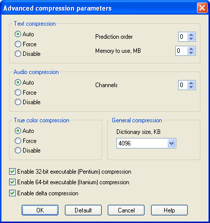 Advanced compressions parameters |
